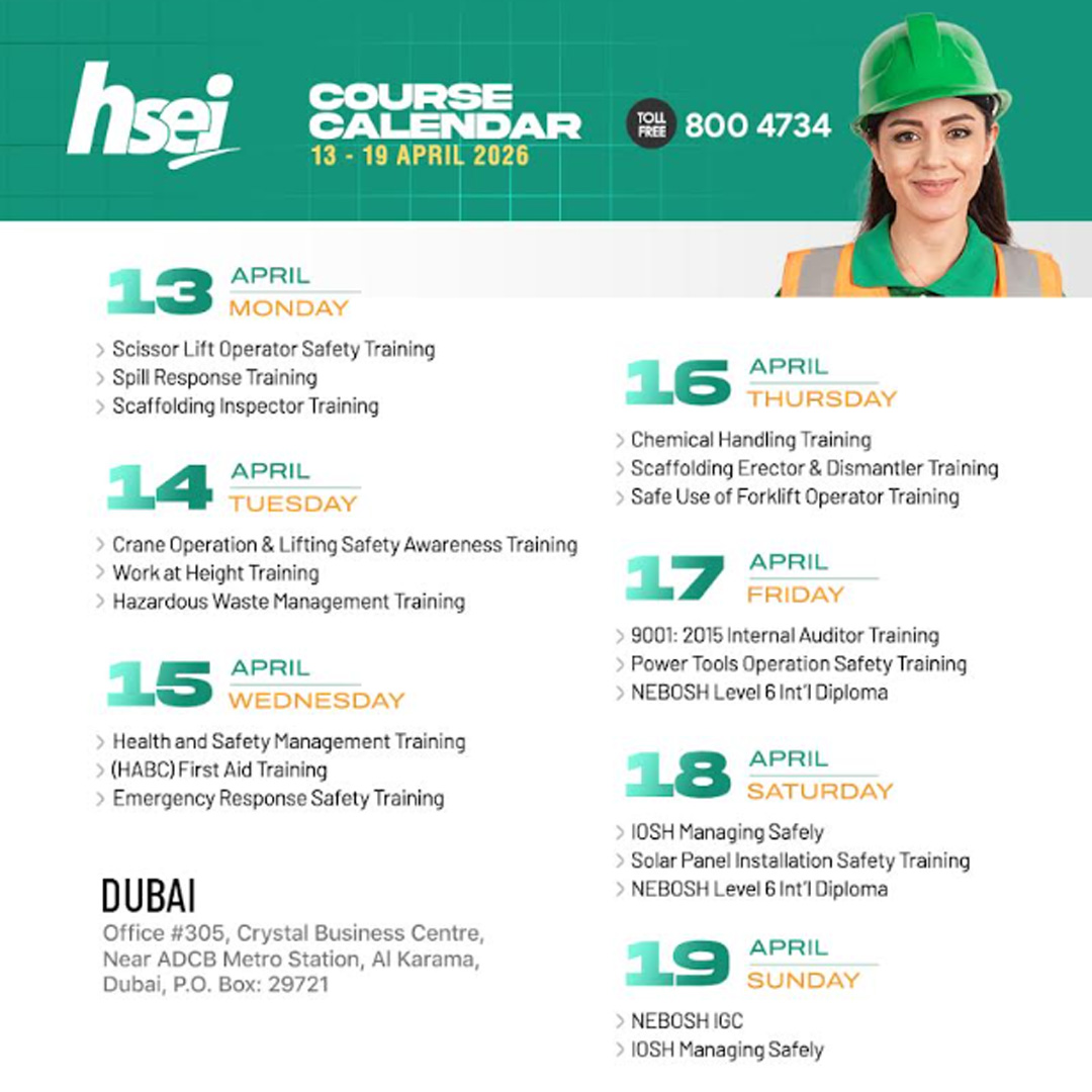 | 10 | Scaffolding Erector Training | Dubai | 10 April 2026 | Book Now |