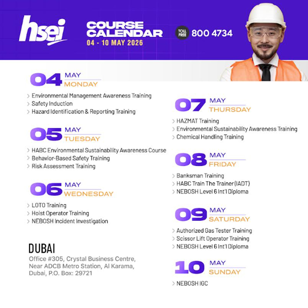 | 11 | Banksman/Flagman Training - Road Construction | Dubai | 11 April 2026 | Book Now |
