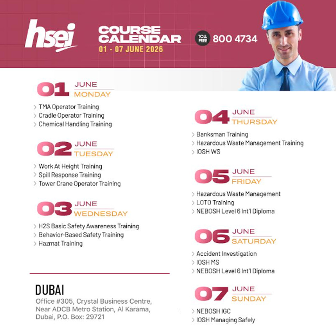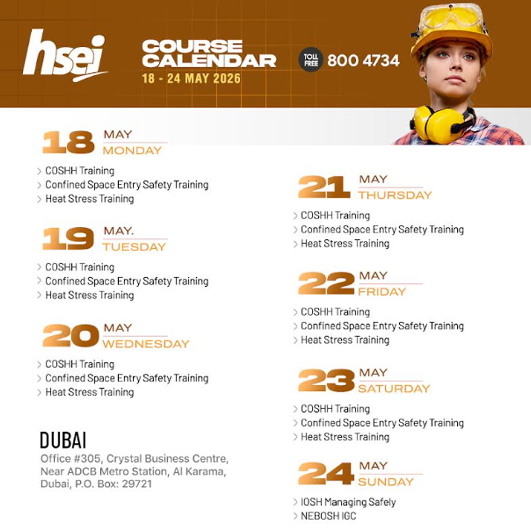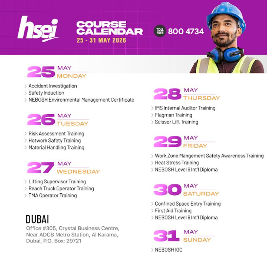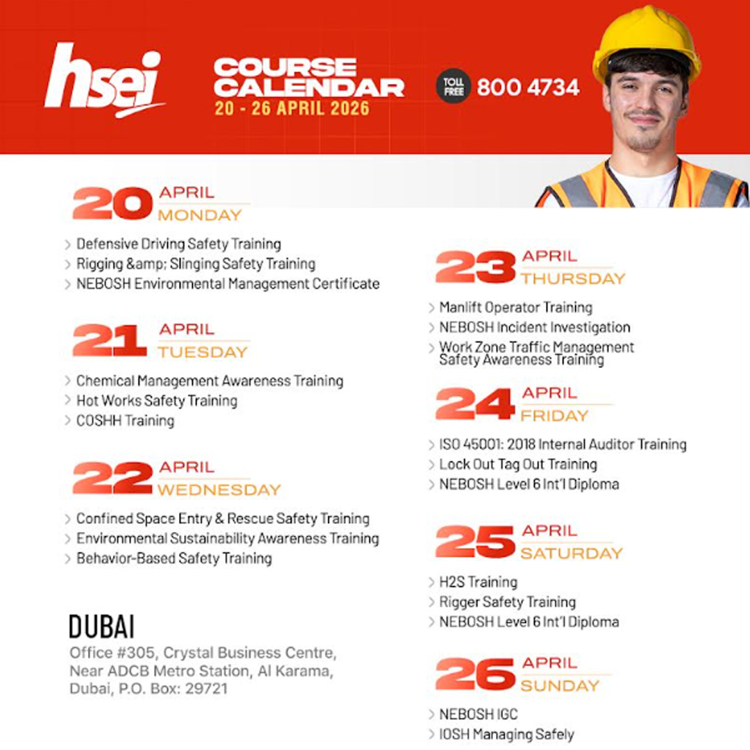 | 11 | Banksman/Flagman Training - Road Construction | Dubai | 11 April 2026 | Book Now |